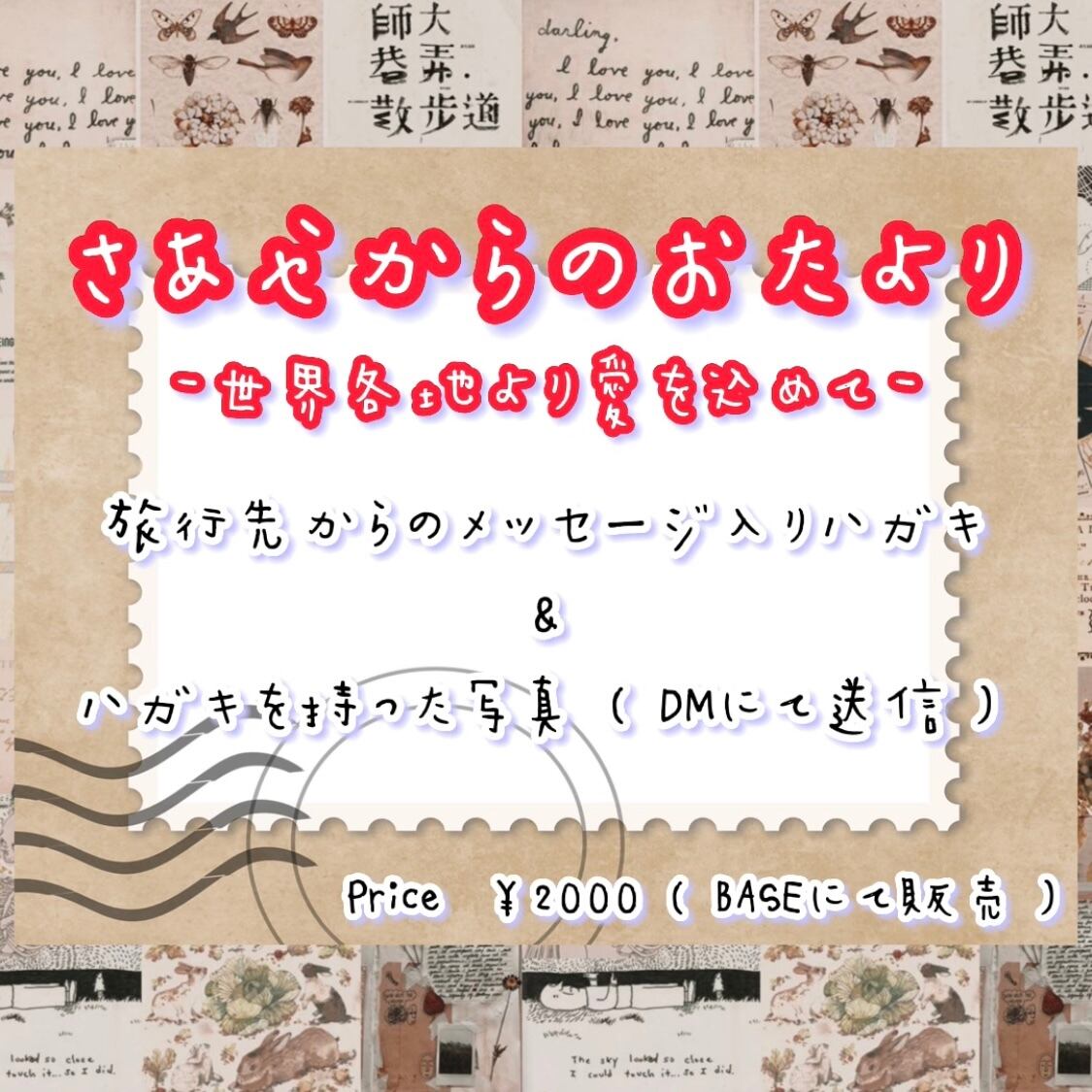 ・ハガキの届いた報告をご購入者様よりいただき次第、DMにてハガキとのツーショット写真を送らせていただきます。